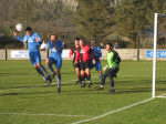 Gareth Parry yn brwydro am y peniad / Gareth Parry battles for the header