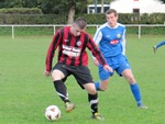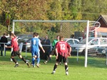 Peniad Ryan Davies yn rhoi trafferth i'r golwr / Ryan's header troubles the keeper