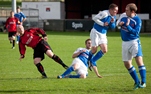 Chris Williams yn ennill y peniad / Chris Williams first to the header