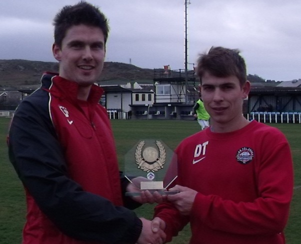 Gyda thymor 2011/12 yn tynnu at y terfyn â Port yn dal ar rhediad o 5 buddugoliaeth yn olynol mae’r rheolwr Gareth Parry yn barod a’i olygon ymlaen ac yn cynllunio at y tymor nesaf. Mae wedi symud i roi Grahame Austin a Darren Thomas, dau sydd wedi serennu yn ystod y tymor hwn, ar gontractau at y tymor nesaf. Mae’n benderfyniad doeth ac yn osgoi llawer o’r sbecian a dyfalu sydd yn dod yn ystod yr haf ac hefyd yn tawelu meddyliau cefnogwyr fod cynllunio at y tymor newydd yn barod yn mynd yn ei flaen. Mae Gareth hefyd yn cadarnhau bydd mwy o enwau yn dilyn yn fuan, gan fod yr ysbryd yn y garfan yn uchel iawn.As the 2011/12 season draws to a close with Port on a league run of five straight wins, manager Gareth Parry is thinking ahead and planning for next season. He has moved swiftly and has already put Grahame Austin and Darren Thomas, two outstanding performers during this season, on contracts for next season. This is a wise move as it avoids much of the speculation which usually comes during the summer break and reassures supporters that planning for the new season is well in hand. Gareth also assures followers that other names will follow shortly as the spirit in the squad is high. 04/04/12 Chwaraewr y Mis –Mawrth / March Player of the Month Llongyfarchiadau i Darren Thomas ar ei ennill gwobr Chwaraewr y Mis Tlysau Charisma am fis Mawrth yng Nghynghrair Undebol Huws Gray. Mae Darren wedi chwarae’n ardderchog drwy gydol y mis. Yn y gêm gyntaf arweiniodd ei groesiad gwych at gôl Marc Jones a seliodd y fuddugoliaeth dros y Rhyl. Dilynodd hyn gyda dwy gôl yr erbyn Rhos a dwy arall yn erbyn Caersws. Daeth ei bumed o’r mis yn y fuddugoliaeth o 4-0 dros Penycae ac yn goron ar y cyfan yn y gêm olaf yn erbyn Llanrhaeadr arweiniodd ei gic gornel at gôl Grahame Austin ac wedyn torrodd i fewn i’r blwch a saethu a Graham Boylan yn troi’r ergyd i’r rhwyd i ennill y gêm. Tipyn o gyfraniad! Derbyniodd y wobr wrth ei reolwr Gareth Parry cyn y gêm yn Maesdu, Llandudno cyn gêm nos Fawrth. Congratulations to Darren Thomas on his well deserved recognition as Charisma Trophies Player of the Month for March in the Huws Gray Alliance. Darren has been in great form throughout the month. In the first game of the month his excellent cross for Mark Jones sealed the win over Rhyl. He followed this up with doubles against Rhos Aelwyd and Caersws. He scored his fifth goal of the month in the 4-0 win over Penycae, and to cap things, in the final game of the month against Llanrhaeadr, his corner resulted in a headed goal for Grahame Austin and he followed this with a break into the box and his shot goalwards was diverted into the net by Graham Boylan for the match winner. All in all quite a month! He was presented with his trophy by manager Gareth Parry before kick off at Maesdu Park, Llandudno. 01/04/12 Rhagolwg: Cwpan y Gynghrair / Preview: League Cup